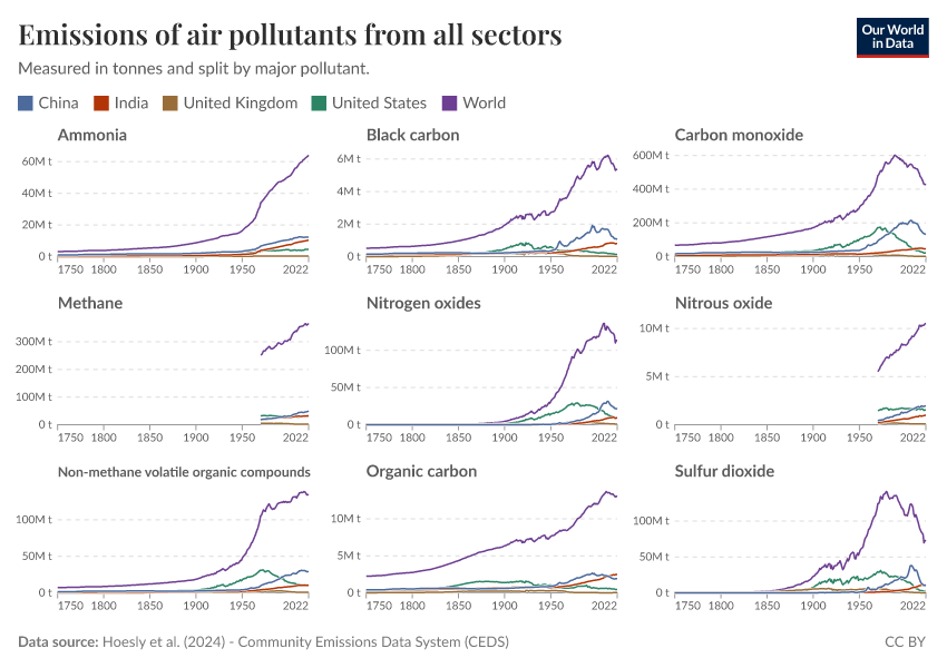 Explore historical emissions of air pollutants across the world.