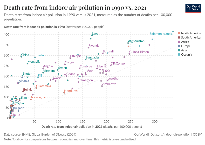 Hannah Ritchie and Max Roser (2022) - “Indoor Air Pollution” Published online at OurWorldinData.org. Retrieved from: 'https://ourworldindata.org/indoor-air-pollution' [Online Resource]BibTeX citation