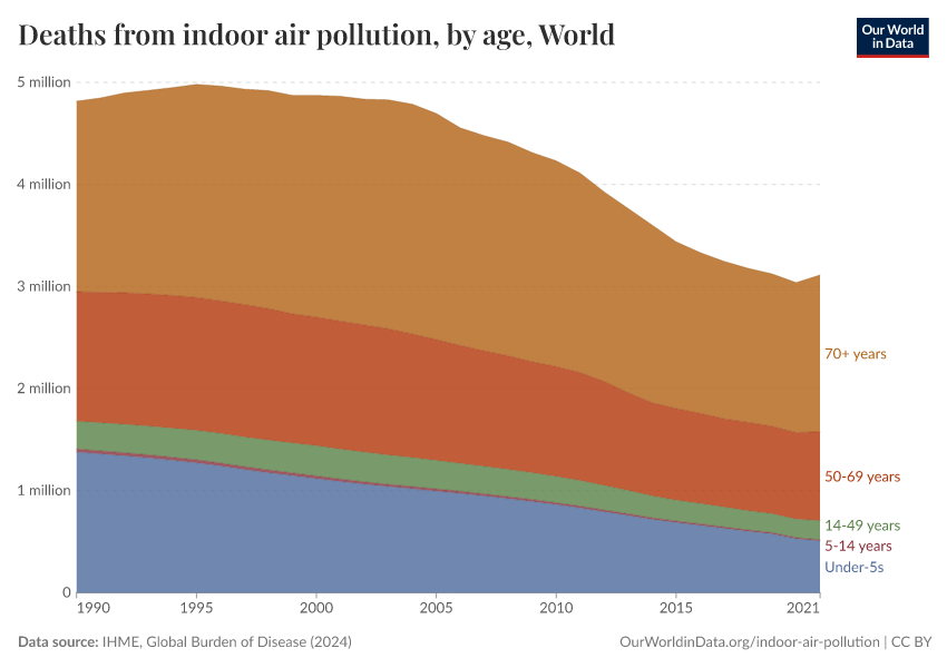 This visualization shows the breakdown of deaths from indoor air pollution by age group.