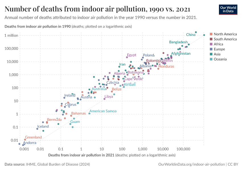 This means that despite continued population growth in recent decades, the total number of deaths from indoor air pollution has still declined.