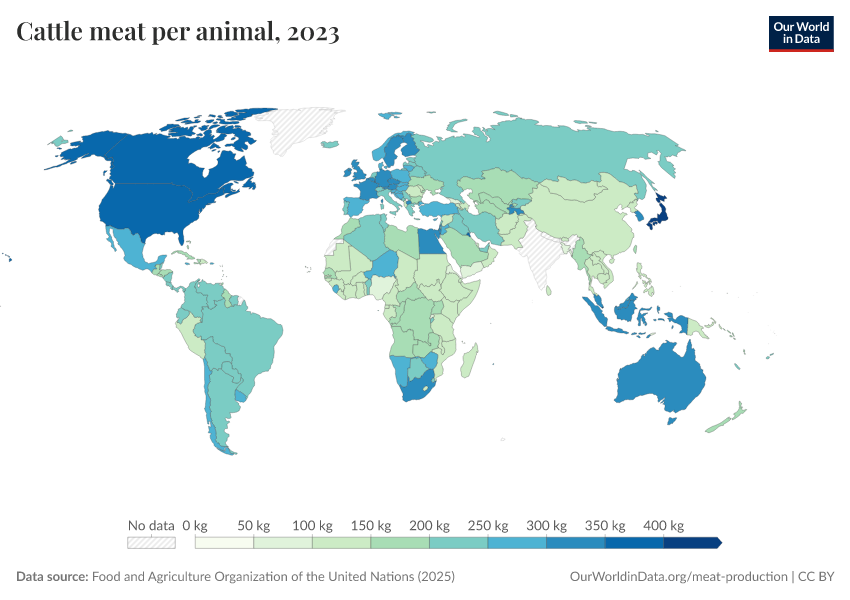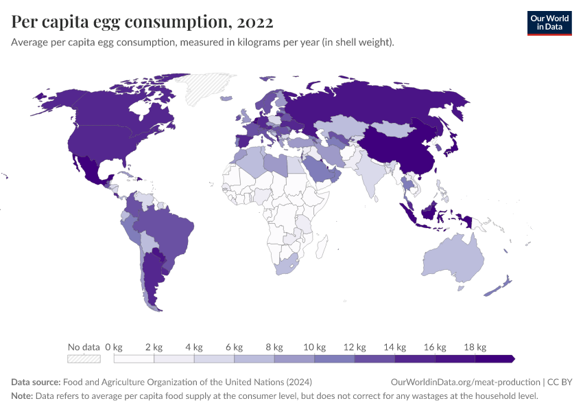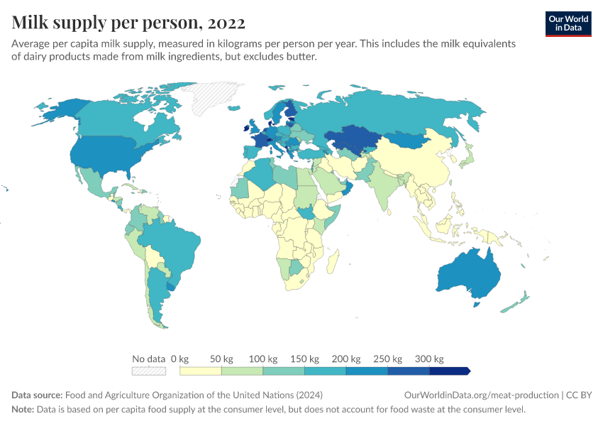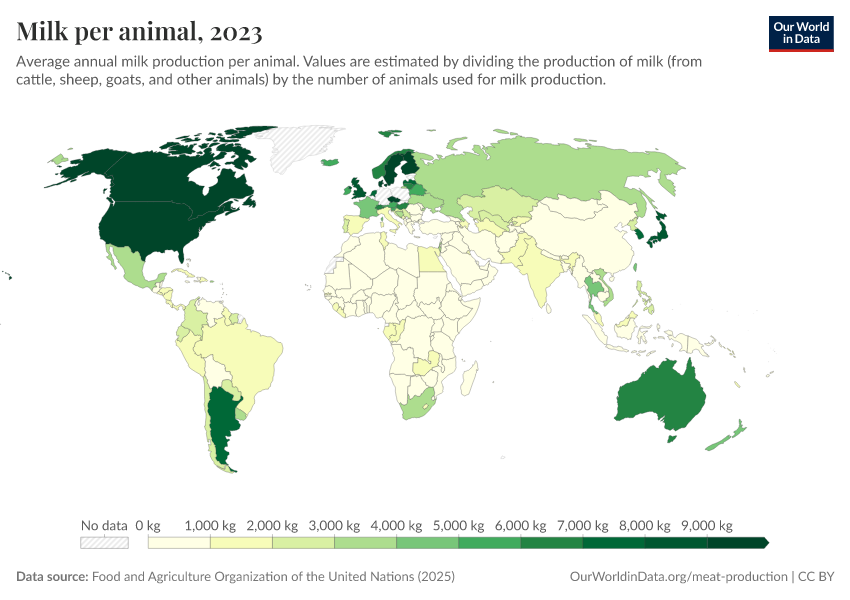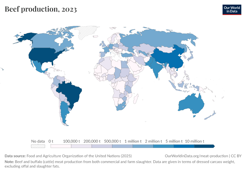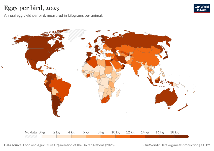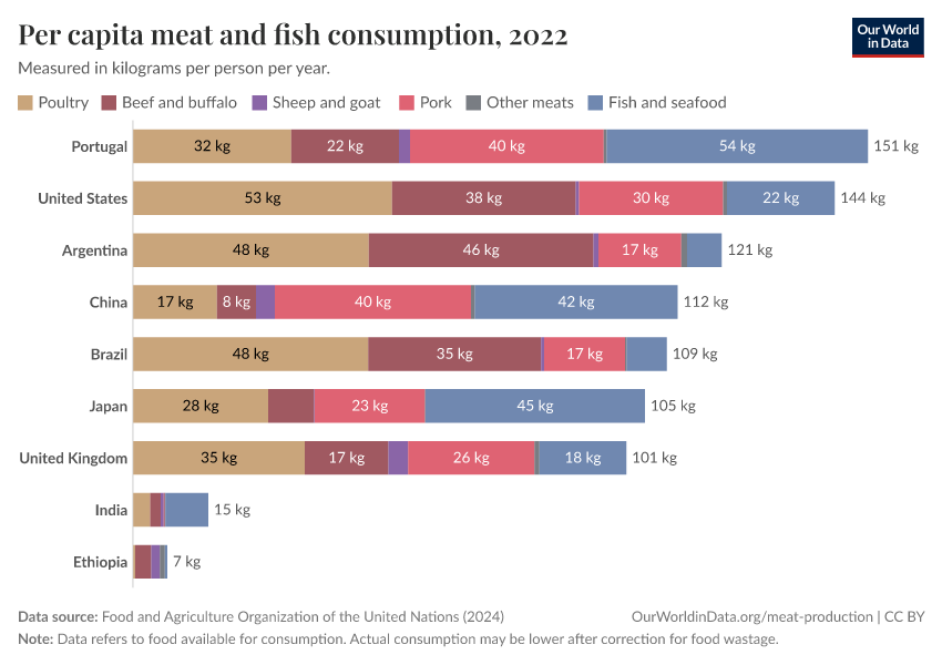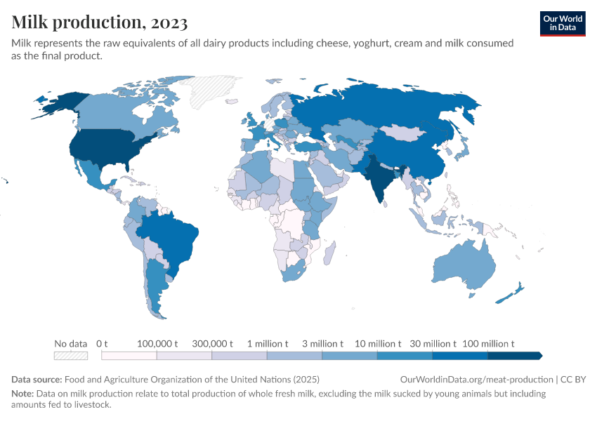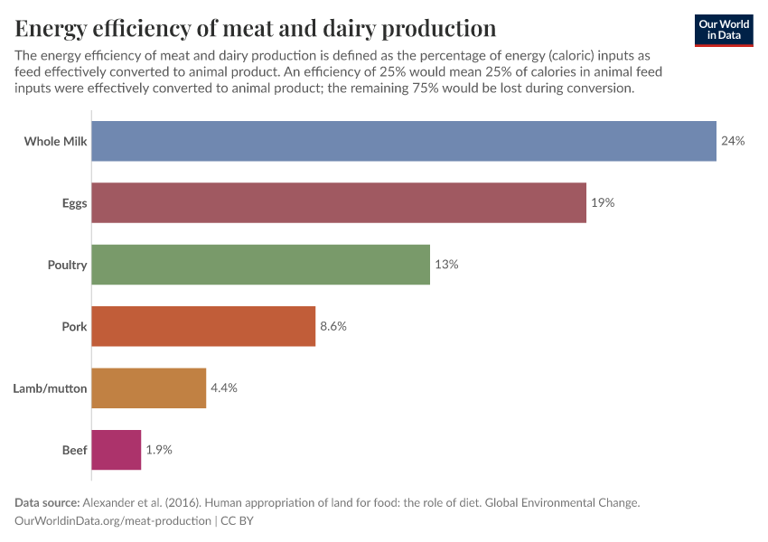 Hannah Ritchie, Pablo Rosado, and Max Roser (2019) - “Meat and Dairy Production” Published online at OurWorldinData.org. Retrieved from: 'https://ourworldindata.org/meat-production' [Online Resource]BibTeX citation
