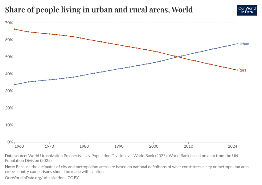 You can explore the data on urban and rural populations for any country or region using the "Change country or region" toggle on the interactive chart.