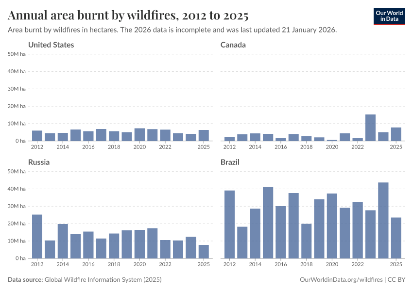 Veronika Samborska and Hannah Ritchie (2024) - “Wildfires” Published online at OurWorldinData.org. Retrieved from: 'https://ourworldindata.org/wildfires' [Online Resource]BibTeX citation